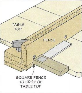 Now all that’s required is to set the table to the desired angle and square the fence to the edge of the top, see Step5.
