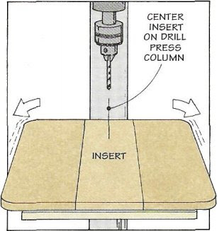 Step 4: After adjusting the height of the metal drill press table, simply line the bit up with a centerline drawn on the insert.